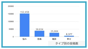 悩み相談アプリきいてにおける「投稿」に関するデータが以下になります。