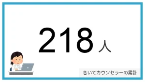 きいてに投稿された内容にコメントをしてくれる専門家を「きいてカウンセラー」として認定しています。記事作成時点できいてカウンセラーの累計は218人となりました。途中で終了になる人もいるため現在も続いているきいてカウンセラーは約26人となります。きいてカウンセラーとしてボランティアをしたいとご連絡をいただくことも多いため、人数としては順調に増えている状況です。