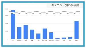 投稿するとき、悩みの種類に応じてカテゴリーを1つ選びます。2025年にもっとも多かったカテゴリーは「心」で投稿数は121,289件でした。次いで「その他」が23,222件、「恋愛」が18,082件、「人間関係」が15,405件でした。2024年と同様に、デフォルトかつ汎用的なカテゴリーである「心」の投稿が多くなりました。投稿数に対する割合が前年よりも1%以上増えていたカテゴリーは「家庭」と「職場・仕事」だったため、家の事情に悩みを抱える人や社会人のユーザーが増えていると考えられます。