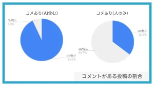 一方でAI以外の「人間からのコメント」だけのデータを見ると、2024年に投稿された内容で1件以上のコメントがついた投稿は35.3%(79,128件)、コメントがつかなかった投稿は64.7%(145,005件)となりました。2024年は37.4%だったため、人からコメントが届く割合は前年よりも少し減りました。