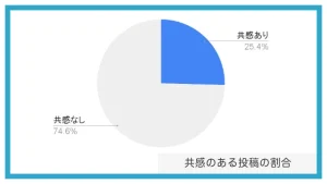 投稿を読んだ人が内容に共感をしたとき、「共感」ボタンを押すことでそれを伝えることができます。2025年に投稿された内容のうち、1人以上から共感された投稿は25.4%(57,004件)、共感されなかった投稿は74.6%(167,129件)でした。2024年は23.4%だったため、前年よりも共感される投稿の割合は増えました。