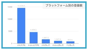 プラットフォーム別のアカウント作成数は、iOSアプリが14,634人、Androidアプリが4,659人、iOSウェブが1,667人、Androidウェブが1,047人、PCウェブが853人でした。2024年と比べるとiOSアプリとAndroidアプリの人数がやや減り、iOSウェブとAndroidウェブとPCウェブの人数が増えました。ウェブよりもアプリの方が多いのは今までと同じ傾向ですが、前年と比べてウェブ利用者のアカウント作成数が増えたことが特徴的です。