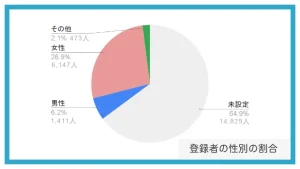 悩みを相談したい人、愚痴を言えるサイトを探している人、話を聞いてくれる相手を探している人、SNS相談に関心のあるカウンセラー志望の人など、きいてに登録している人はさまざまです。きいて登録者に関する性別や年齢などのデータが以下になります。